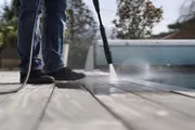 - Hvis der er pletter eller snavs på terrassen, der ikke går af, kan du prøve at tilsætte et rengøringsmiddel til højtryksrenserens reservoir og gentage processen for at fjerne dem.
