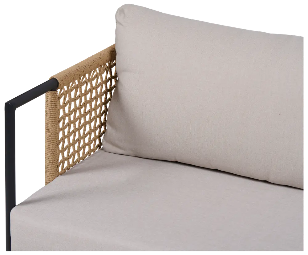 Dette flotte loungesæt kombinerer moderne stil og funktionalitet med et naturligt design. Sættet består af en sofa, to stole og et bord, alle med stel i aluminium og flettede detaljer i rope-materiale for et elegant udtryk. Bordet har en spraystone-top, som tilføjer et flot, tekstureret look. De tilhørende puder med 10 cm tykkelse sikrer høj siddekomfort. Sættet kræver minimal vedligeholdelse og er velegnet til både terrasse og have.